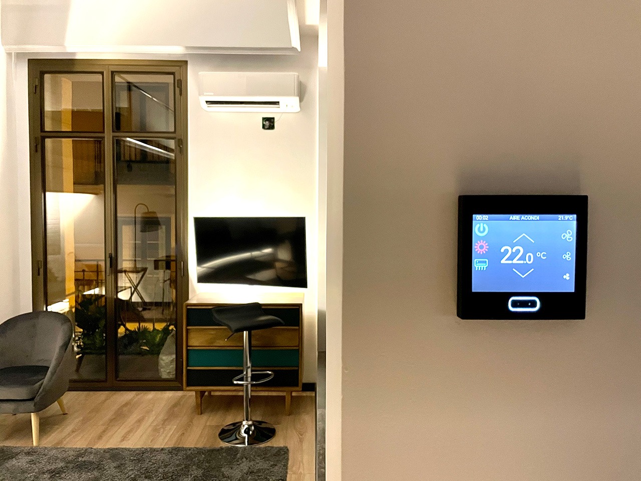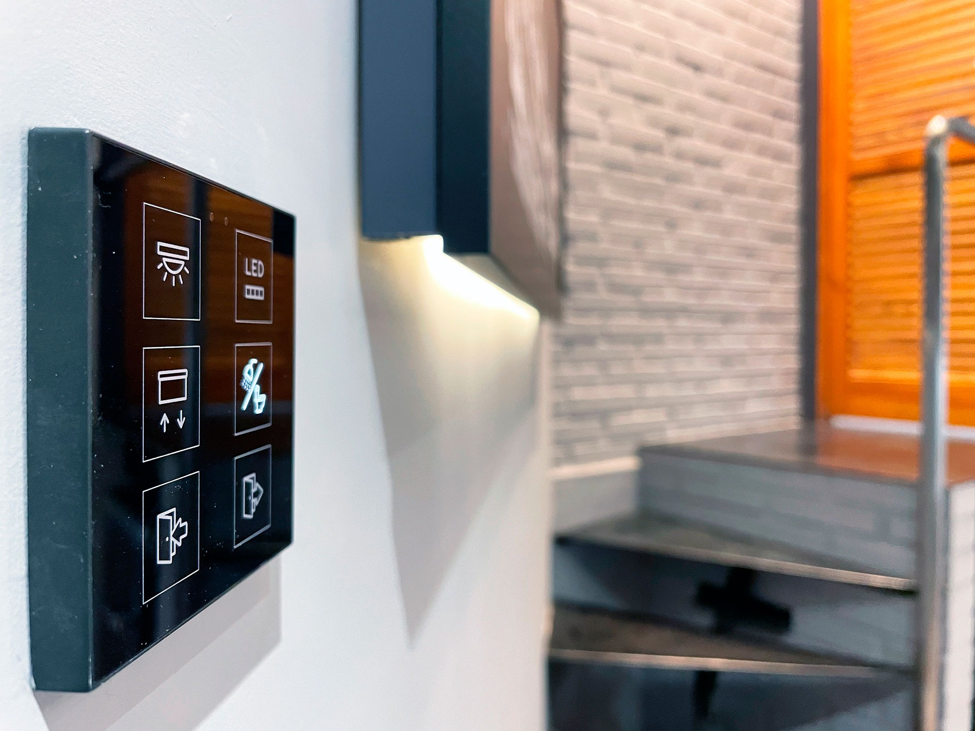 • Viviendas con pulsadores multifunción que unifican control de clima, luz y persianas, sustituyendo más de 10 mecanismos convencionales por un único punto elegante y personalizable.