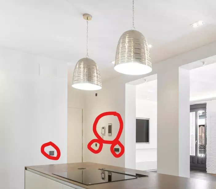 • Paredes saturadas con hasta cinco tipos de mecanismos distintos: interruptores, dimmers, termostatos, control de persianas y mandos independientes.